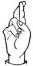 На ћирилици написано ХРАНИМИР БЕЛОБАБИЋ састоји се из 17 слова [?]. Исписано ћириличном једноручном азбуком за глувонеме: